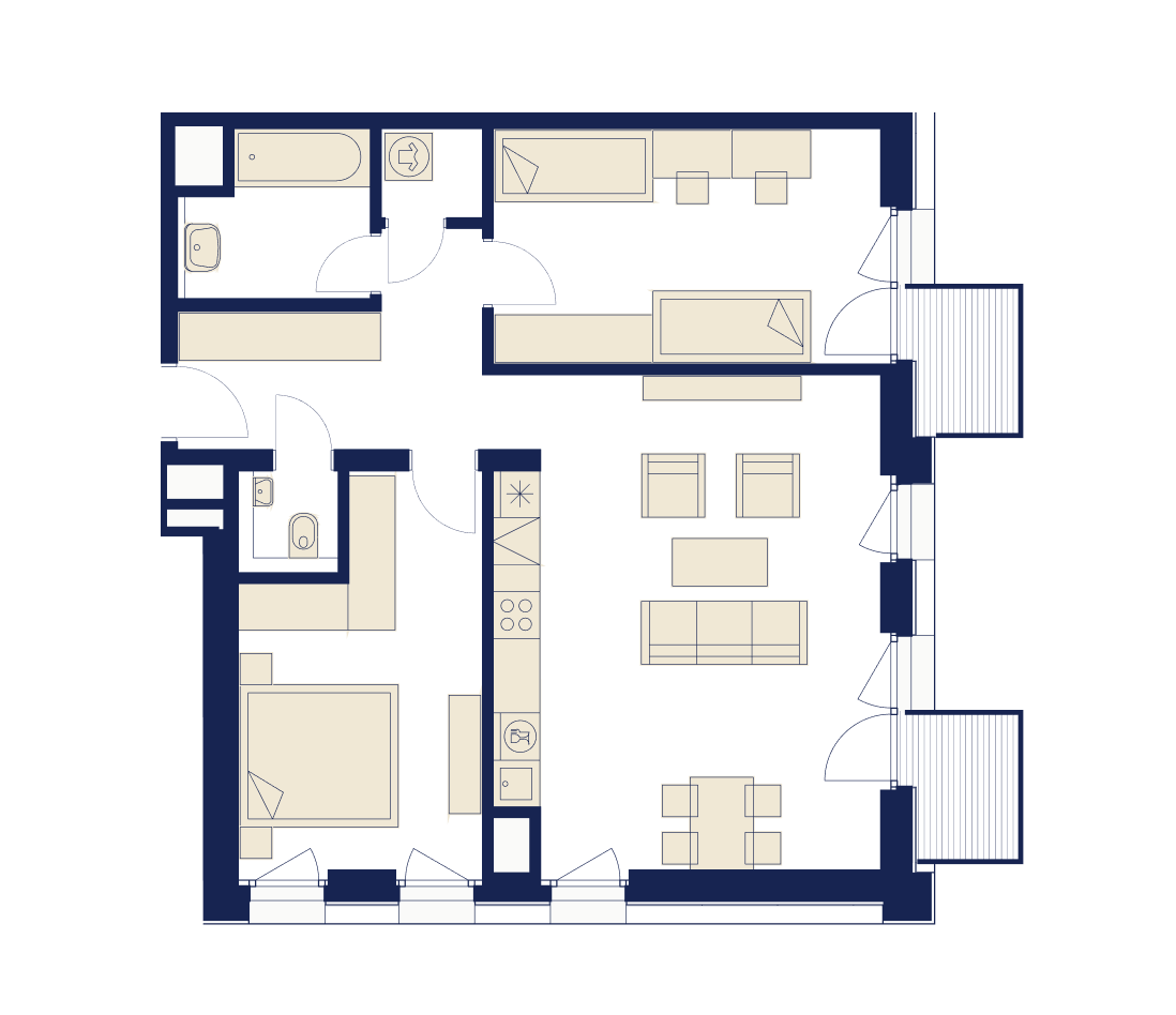 Aj najmenšie byty a apartmány poskytujú všetko potrebné pre pohodlné prémiové bývanie. Každá dispozícia je navrhnutá funkčne, s dôrazom na maximálnu využiteľnosť priestoru.